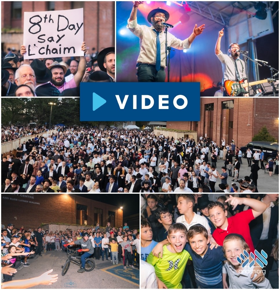 Thousands of members of the various frum communities in Toronto joined together for joyful Simchas Beis Hashoeva held in front of 770 Chabad Gate.