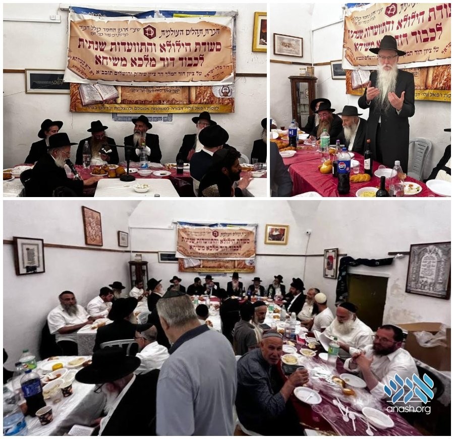 As every year, on the day after Shavuos, a Hilula feast and farbrengen were held near the kever of David Hamelech in the Old City of Yerushalayim, by the Colel Chabad Worldwide Tehillim group established by the Frierdiker Rebbe.