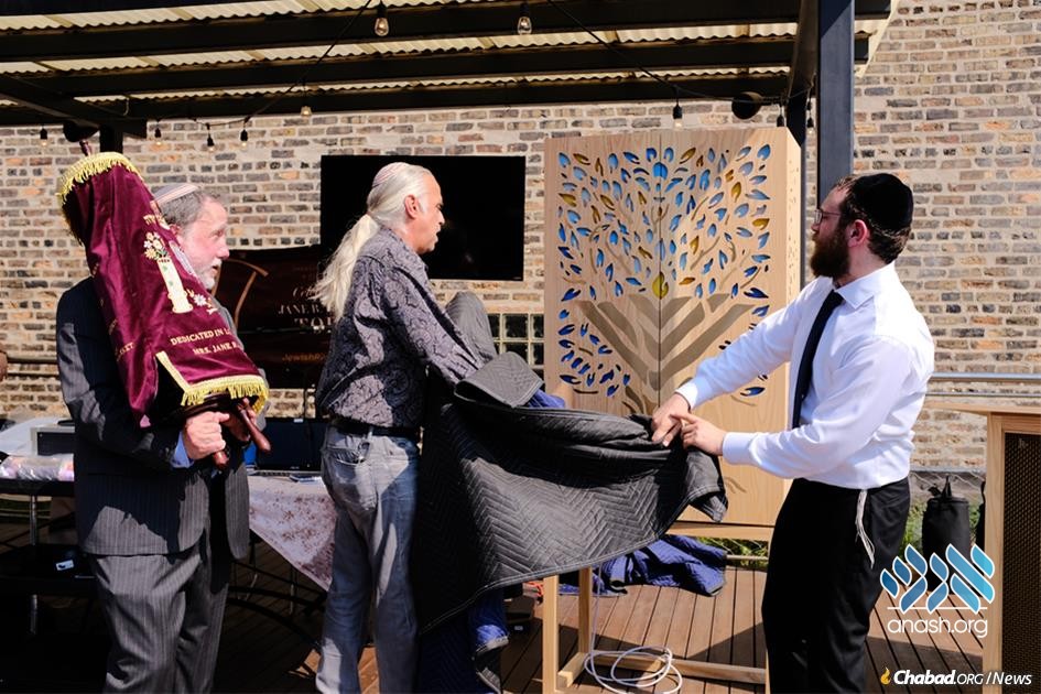River North’s opportunities also came with challenges. The high cost of real estate, along with the lack of a centralized “Jewish” area in a relatively small neighborhood, forestalled the establishment of a permanent synagogue and community center. Each holiday or function had the Kagans searching anew for a venue to rent. When approached by community member David Rosenberg, who wanted to commission a Torah scroll for Chabad of River North and Fulton Market in memory of his grandmother, Kagan knew he had a conundrum. He had to find a respectable solution for how to house the Torah, while remaining practical enough to transport it when necessary.