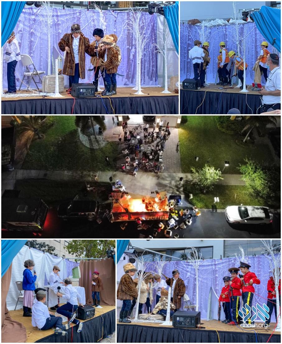 Entertainment, drama, toichen, and an empowering lesson were all part of the traveling Chanukah theater performed by the boys of the Chabad of Miami Gardens community of Shluchim.