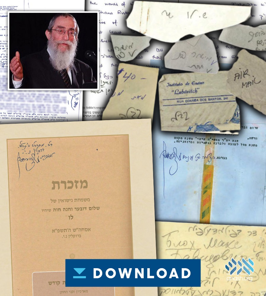 In a teshura distributed by the Wednesday night wedding of Berel and Chana Lew, tens of these letters were published, many for the first time. The collection gives a glimpse into the special relationship the Lews enjoyed, and into their decades of work for the Rebbe.