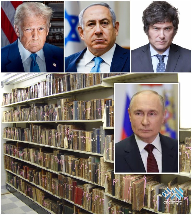 After decades of intensive and international efforts to retrieve the archive of over 12,000 seforim and rare manuscripts of the Rebbeim, known as the “Schneerson Library,” currently held in Russia, Chabad is intensifying its efforts with a dramatic new initiative. An initiative is underway to enlist the support of U.S. President Donald Trump, Israeli Prime Minister Binyamin Netanyahu, and Argentine President Javier Milei to apply coordinated pressure on Russian President Vladimir Putin, creating what is being called a “rare window of opportunity.”