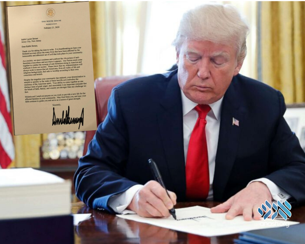 President Trump responded with a letter addressed to Rabbi Lazier Breuer, the principal of the Cheder, expressing his feelings when hearing firsthand about the abhorrent anti-Semitic attack, and pledging to work to stamp out such hateful intolerance everywhere in America. He complimented the community on its resilience and how they came together with bonds of faith and family to rebuild the neighborhood and their lives.