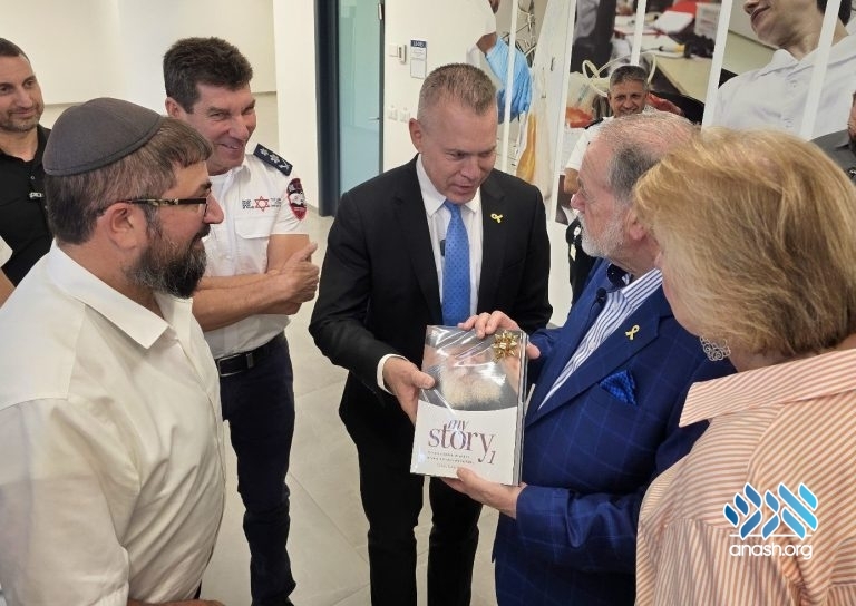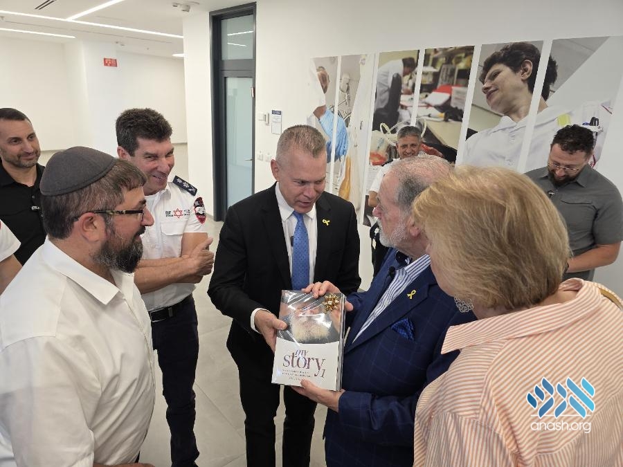 The highlight of the visit came when Itzik Levi, who runs the MDA station in Kfar Chabad, presented Ambassador Huckabee with two volumes of My Story, the JEM-published books of personal encounters with the Rebbe.