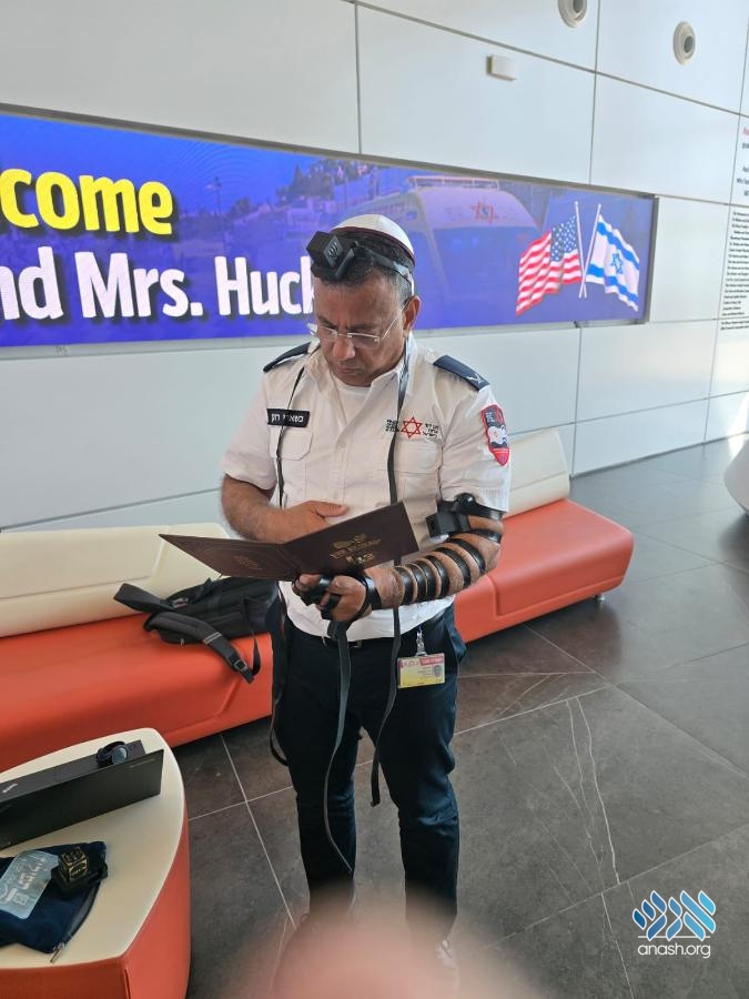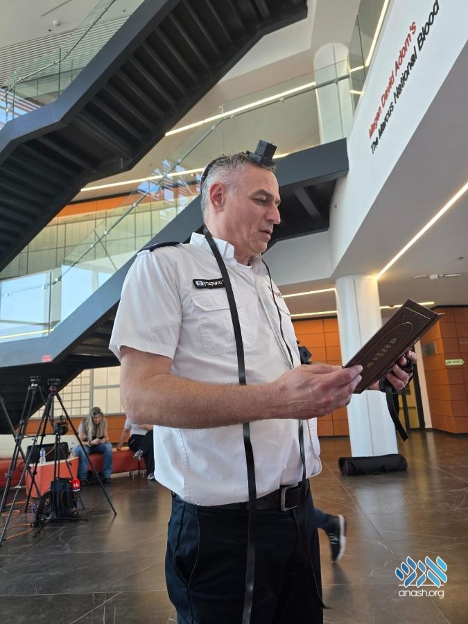 Given the significance of the day, Itzik Levi also took the opportunity to help many of those present put on tefillin, including several high-profile MDA officials such as Director-General Eli Bin and Deputy Director of Operations Gil Mushkowitz.