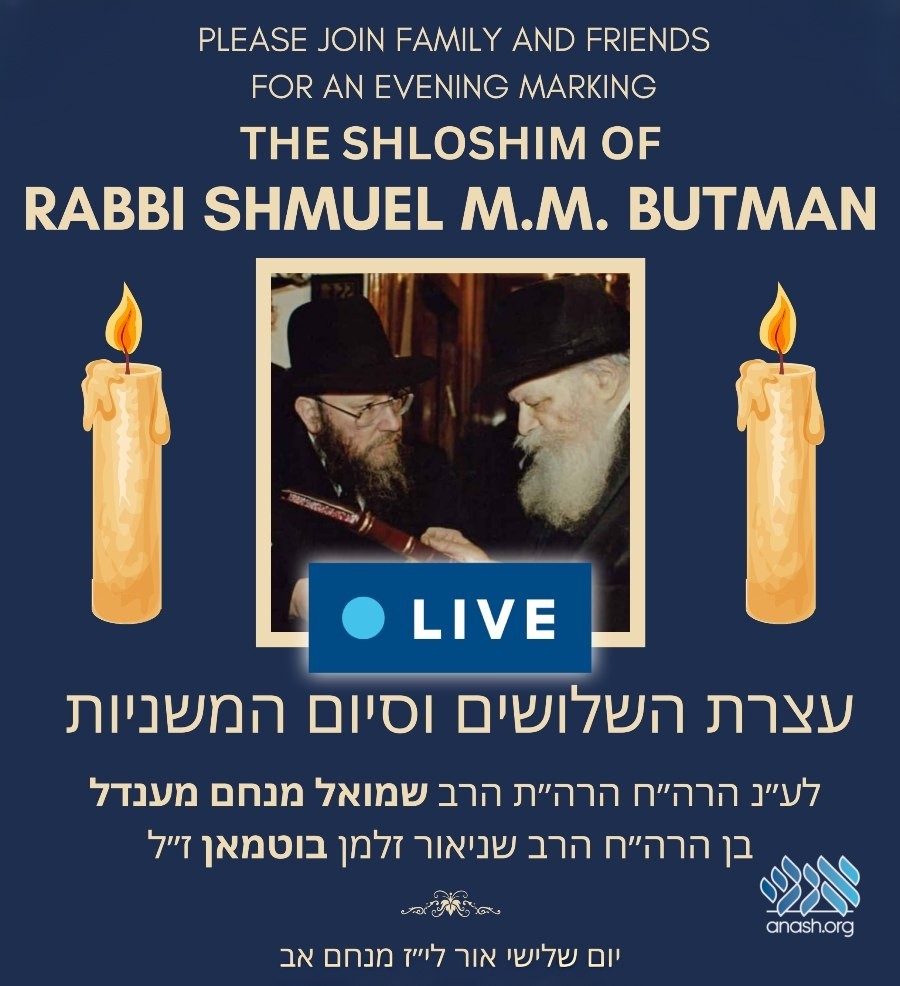 Live: Shloshim Event for Rabbi Shmuel Butman