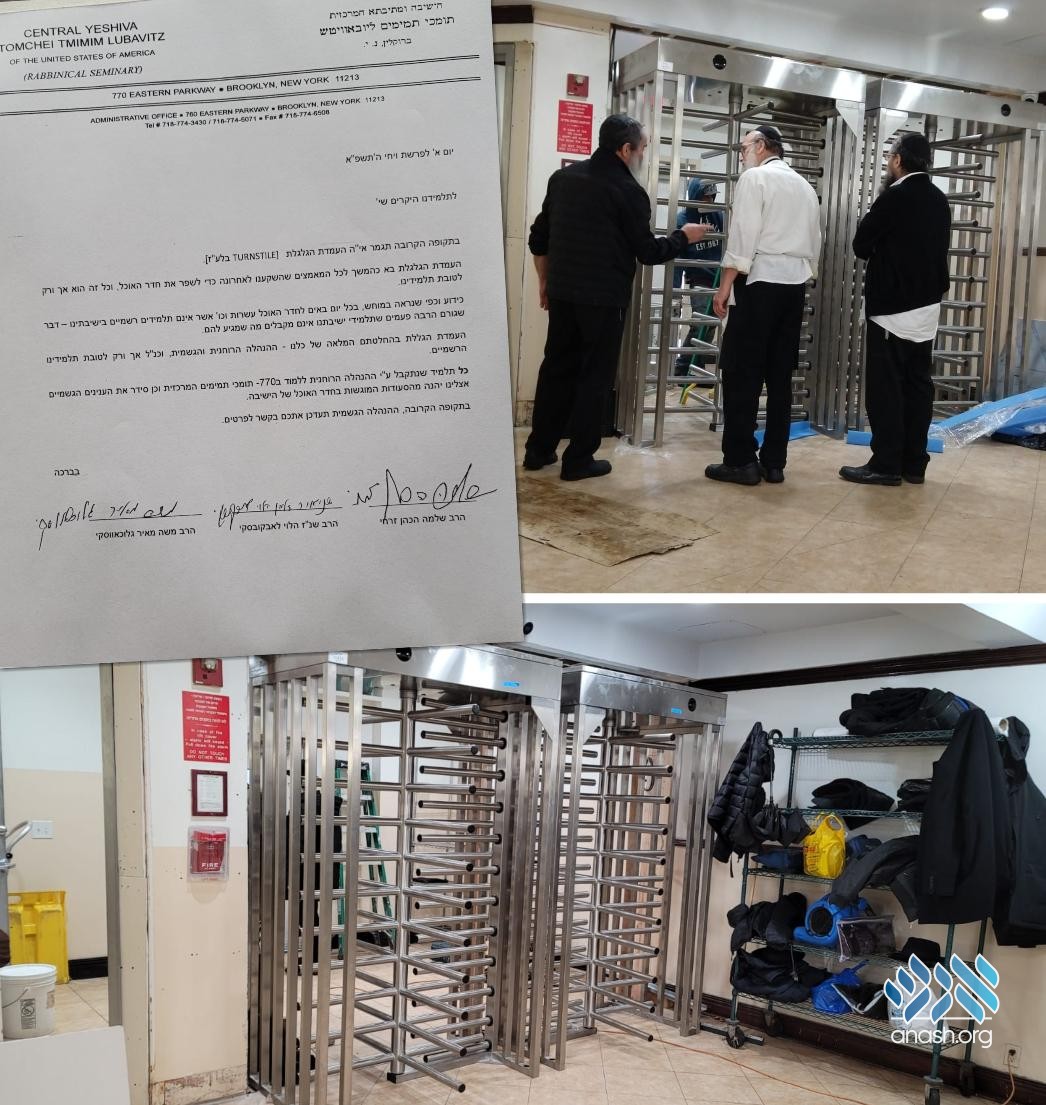 The administration of the 770 yeshiva installed a new turnstile at the entrance to the dining room in the dorm at 1414 President St. The move was explained by members of hanhala in a letter released on Sunday.