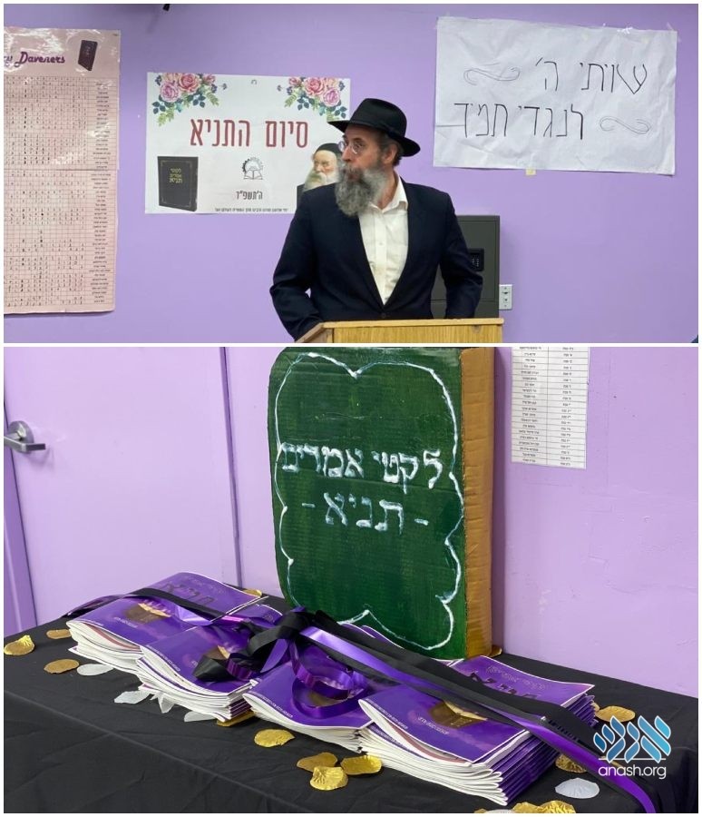 Rabbi Plotkin, the dean of Beis Chaya Mushka, addressed the students at the Siyum, sharing with them the Sicha of the Rebbe that when Moshiach comes, students who have learned Tanya will have the role of teaching it to all those who have not learned it, including great scholars.