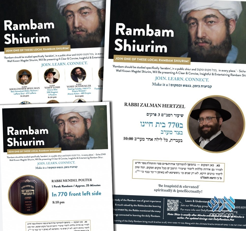 A new 3 perokim Rambam shiur in Hebrew and a new one perek Rambam shiur will be starting in 770, in addition to the one already taking place and the numerous shiurim around Crown Heights.