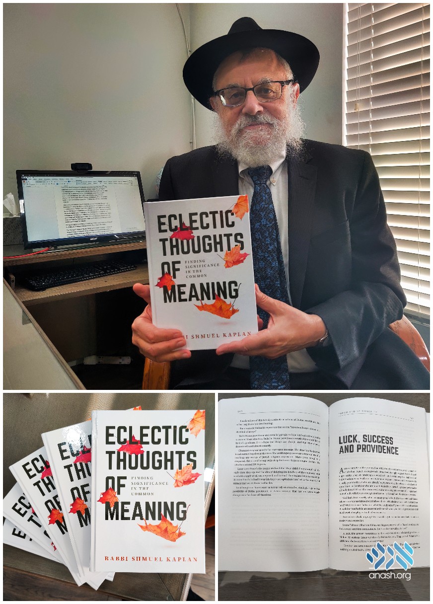 The book published by Ktav Publishers is titled “Eclectic Thoughts of Meaning – Finding Significance in The Common.” It is a collection of two hundred private “blogs” that Rabbi Kaplan has been writing exclusively for his friends and supporters over the past six years.