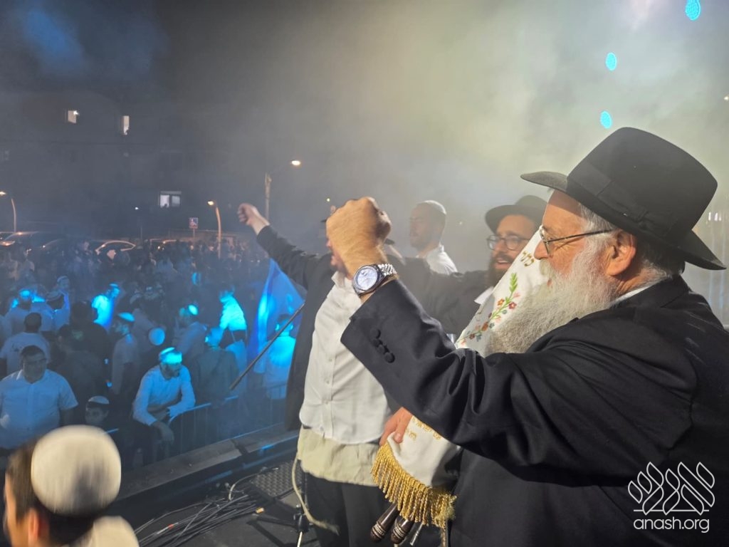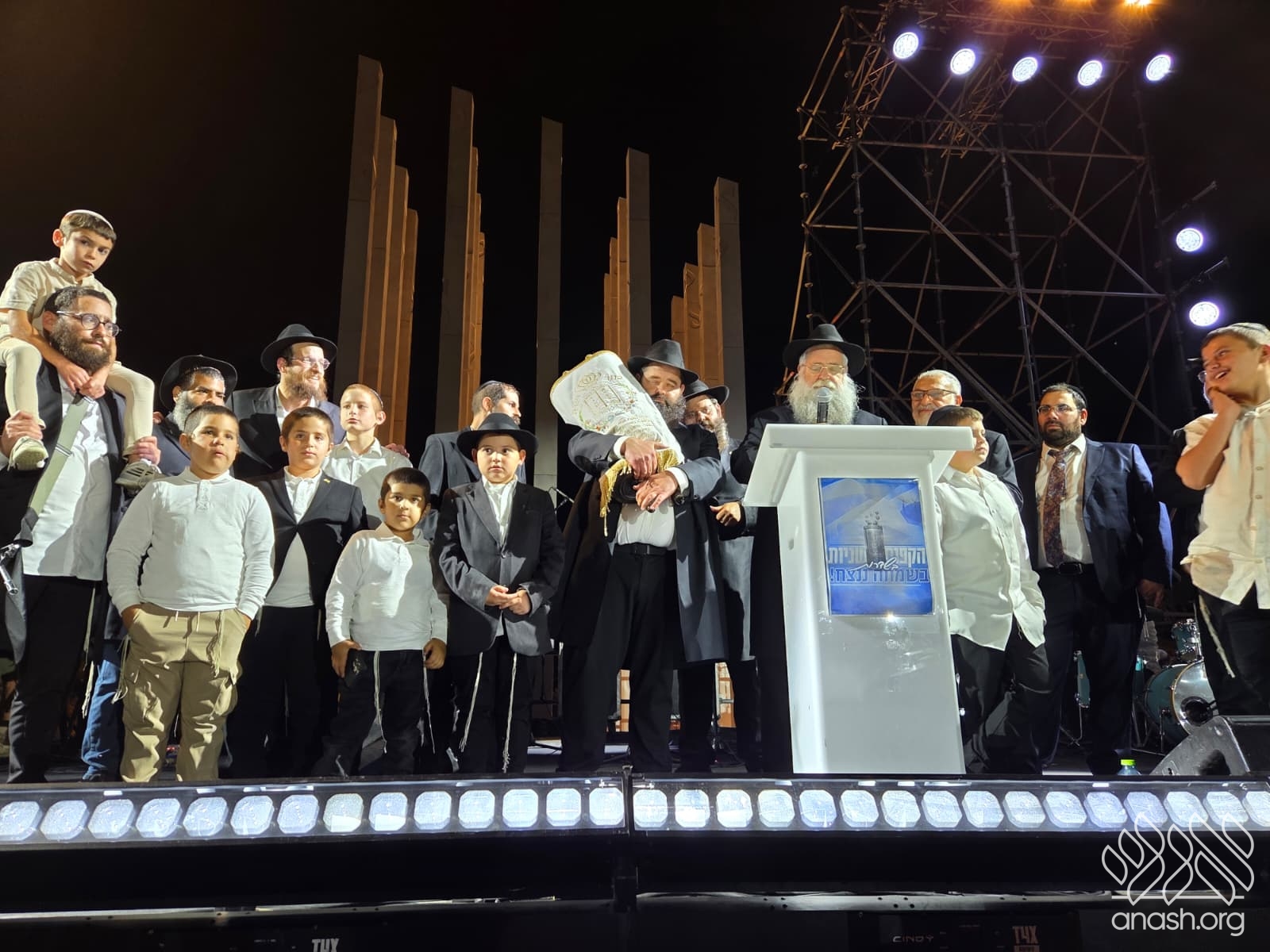 Leading the celebration were the city’s head shliach, Rabbi Moshe Ze’ev Pizem, his son Rabbi Asher Pizem, and his son-in-law, journalist R’ Mendy Rizel.