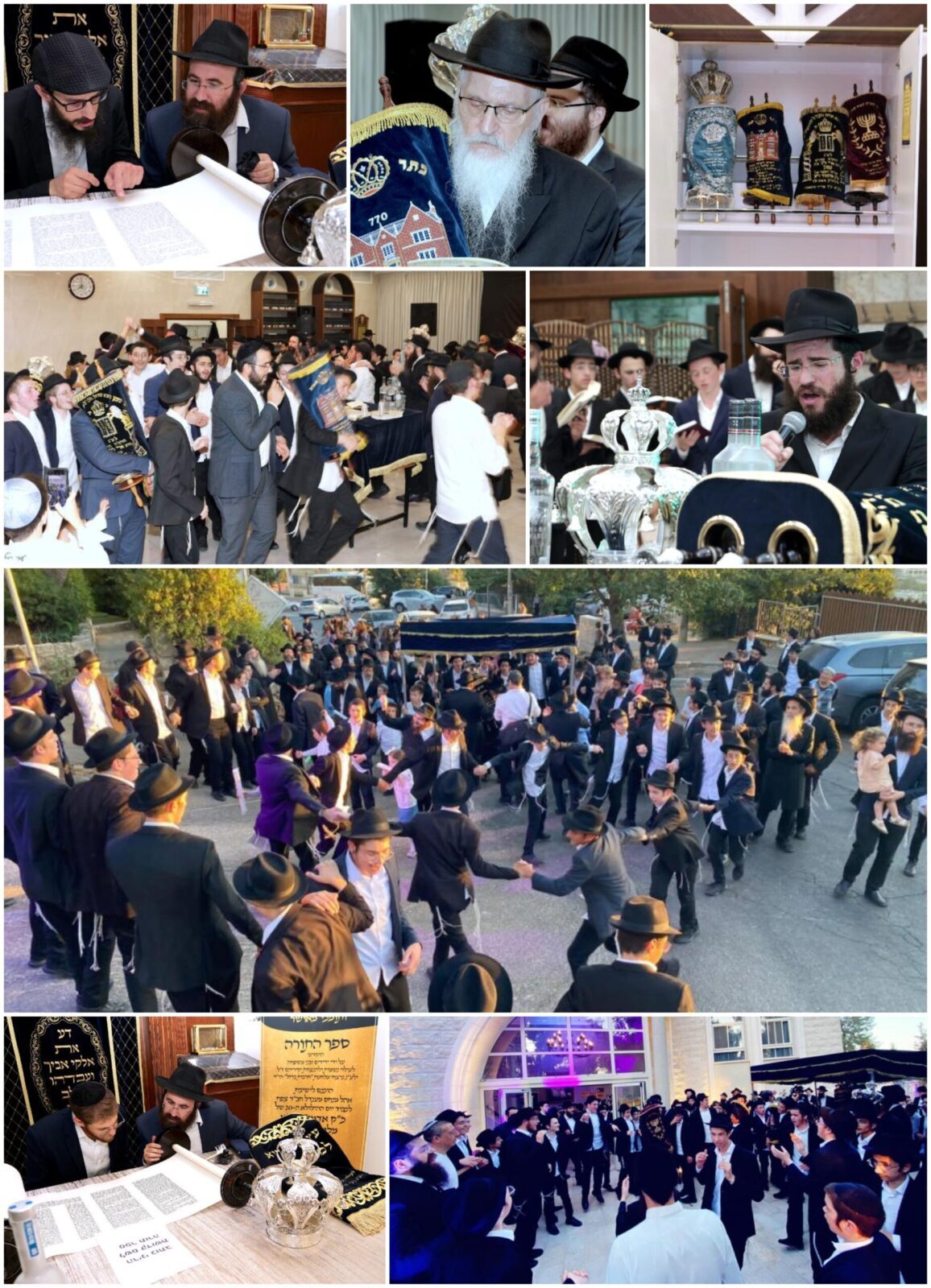 From there, they proceeded with joyful dancing up the hill to the magnificent campus of the Oholei Menachem Mendel Yeshiva. The menahel ruchni, Rabbi Shmuel Mishulovin, honored the community members by carrying the sefer Torah and later led the hakafos and dancing in the yeshiva hall, headed by the Rosh Yeshiva, Rabbi Shneur Zalman Kaplan.