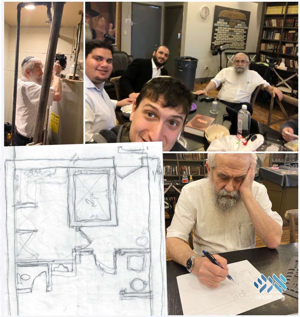 Rabbi Grossbaum then toured the Aliya basement, taking measurements and laying out a plan on how to build the new Aliya mikvah in the most practical way.