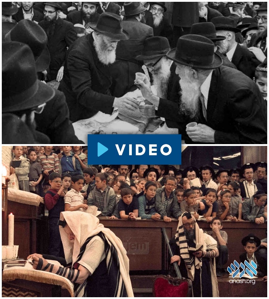 Watch: In honor of Vov Tishrei, JEM released previously-unseen clips of the Rebbe leading davening as chazzan and distributing kos shel bracha following a Vov Tishrei farbrengen, among many other pictures and videos.