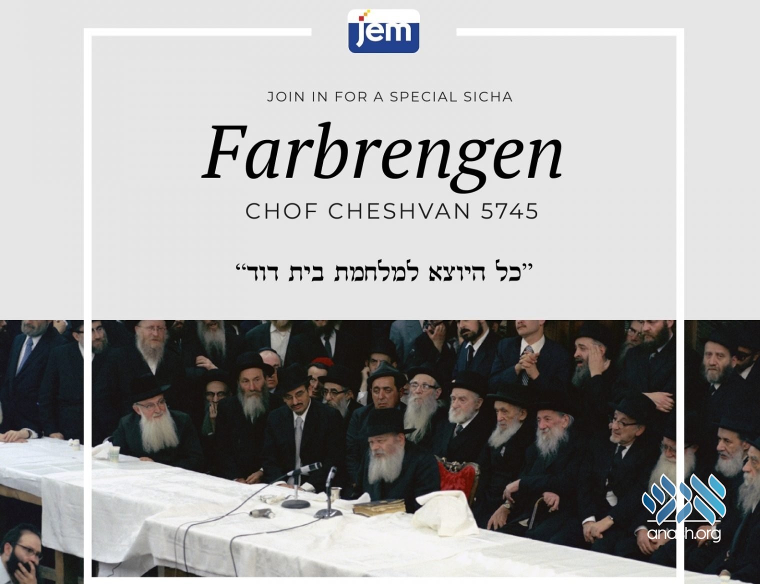 Anash communities around the world will watch a Chof Cheshvan sicha on who should fight the final battle before Moshaich.