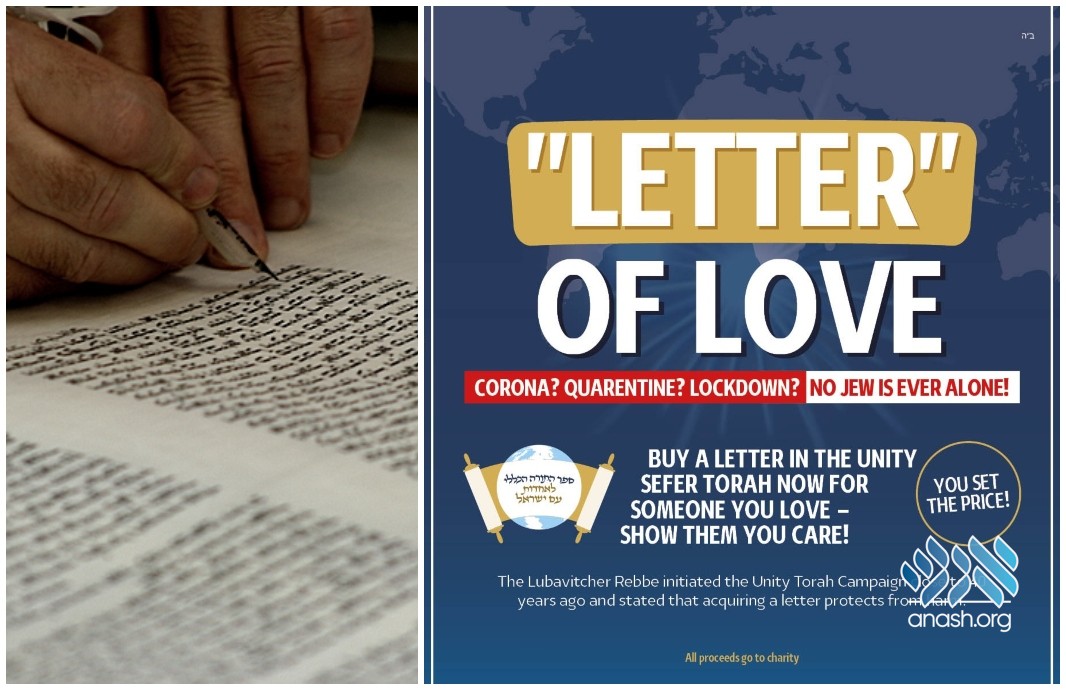 Only 120,000 letters remain in the Sefer Torah Haklali being written for the protection of the Jewish people. The Rebbe instructed that there be no set price per letter. Sign up your family, relatives and friends today!