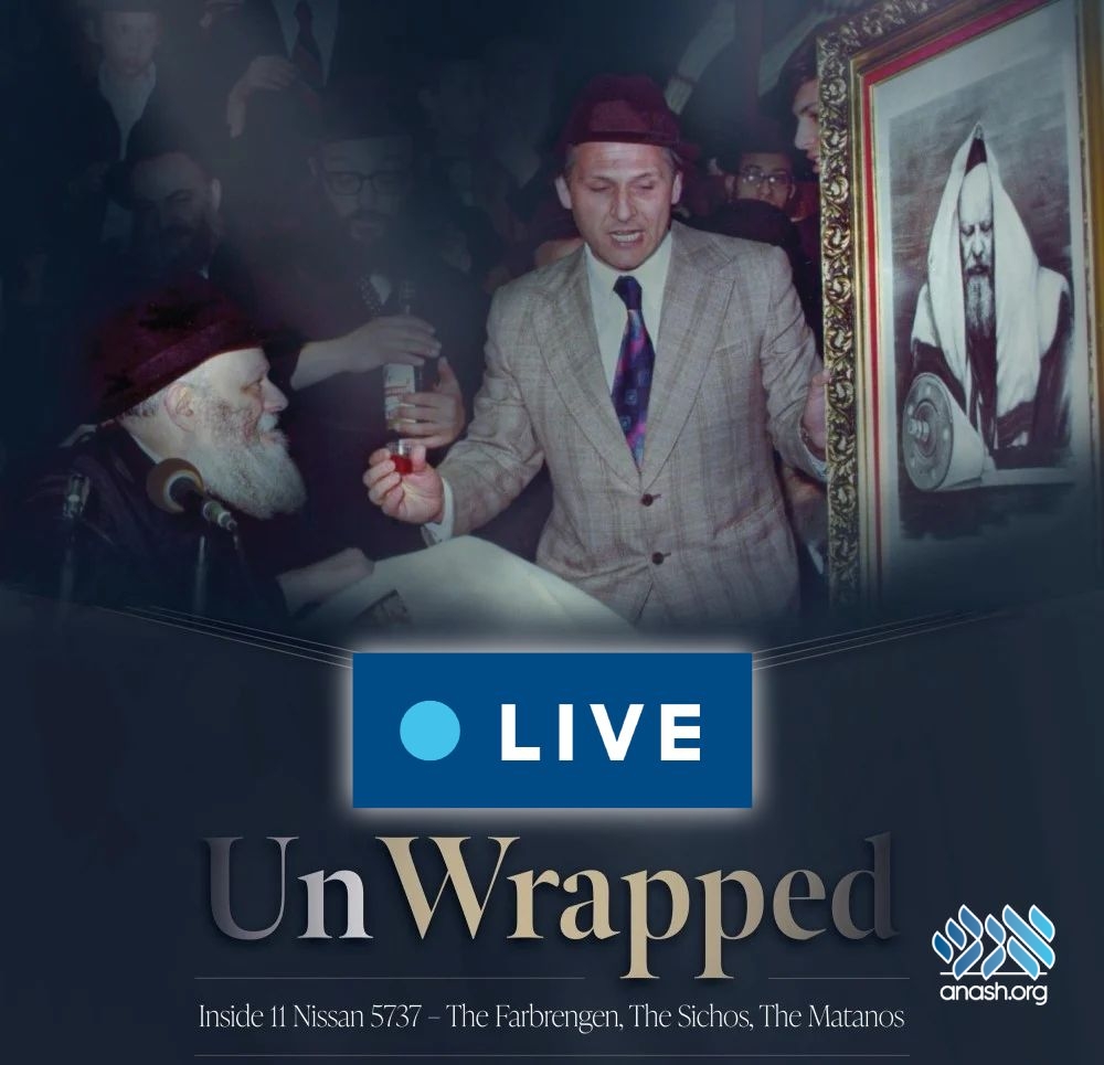 Join live at 4:30 pm: A unique and immersive event by Vaad Hatmimim titled “UnWrapped,” offers bochurim a rare glimpse into the historic farbrengen of 11 Nissan 5737, and a special address by Rabbi Moshe New of Montreal on chassidim’s gifts to the Rebbe.