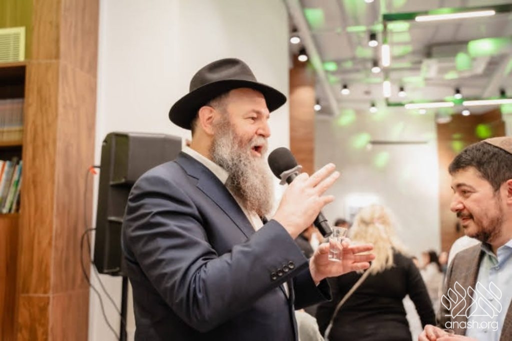 During the seudas mitzva, the guests were also addressed by the Rabbi of the Bolshaya Bronaya shul, Rabbi Yitzhak HaKohen Kogan, the Mara De’asra Rabbi Zalman Shimon Deren, and many distinguished friends and community members.