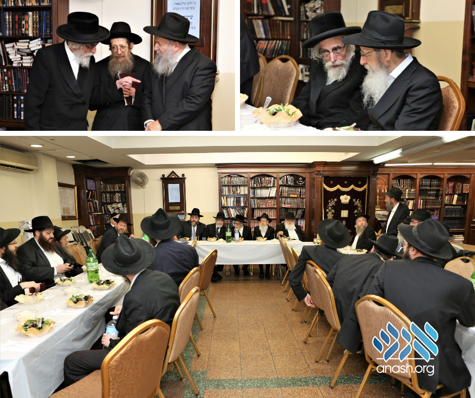 Following their visit to the Yeshiva at 770, the delegation from Vaad HaYeshivos sat down for a meal with the yeshiva’s hanhala.