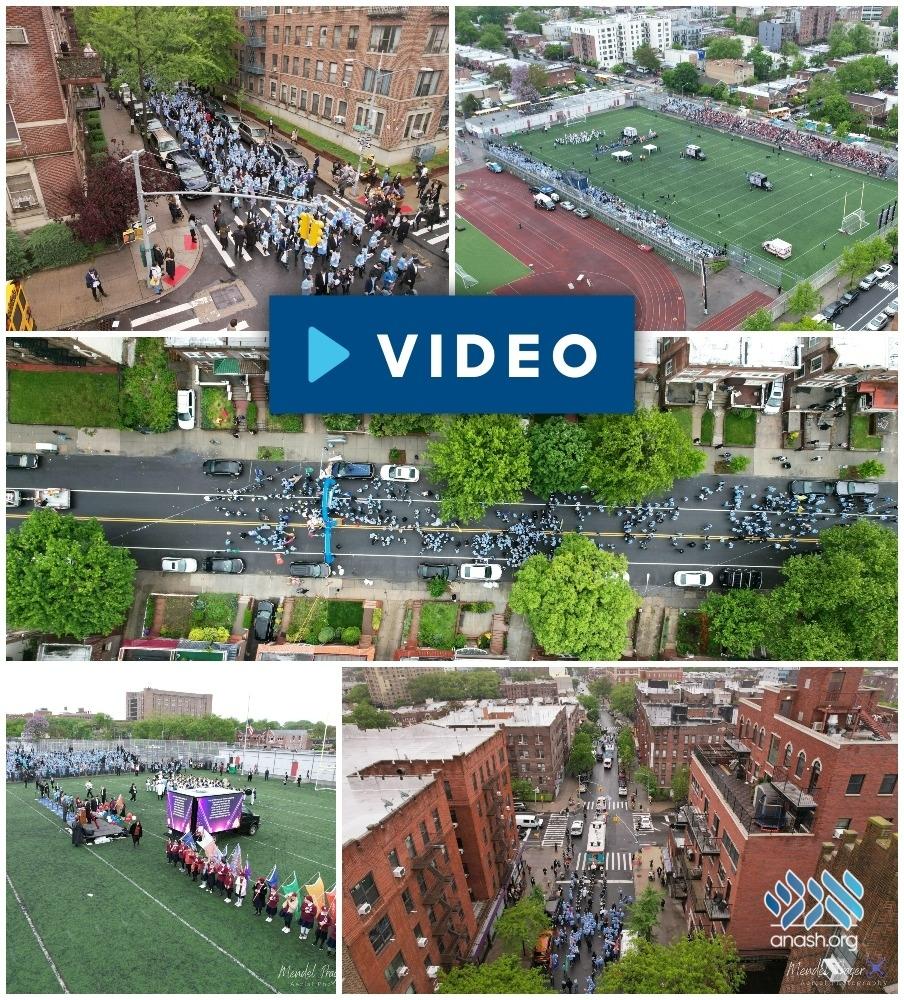 Drone photographers captured beautiful shots of thousands of children marching through the streets of Crown Heights on Lag B’omer, proudly displaying their pride in Yiddishkeit.