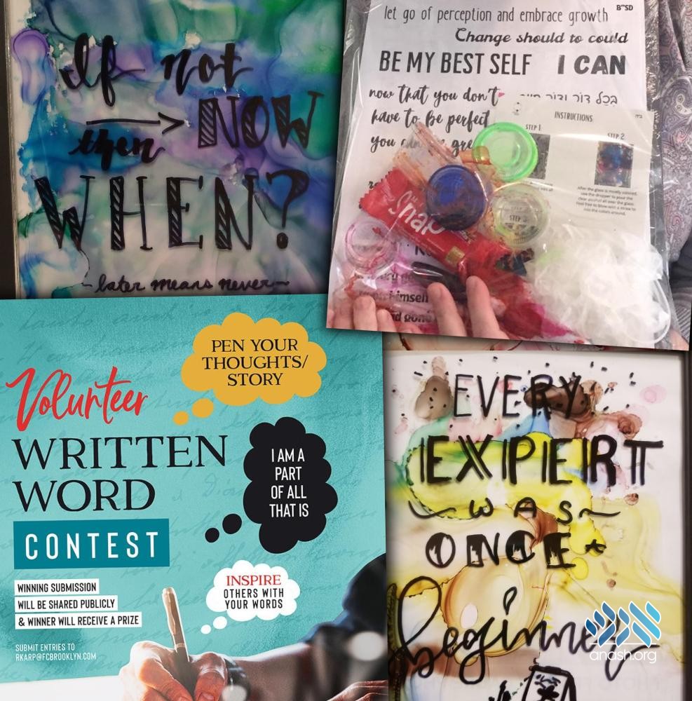 Chana Laber, a talented artist, instructed the teens how to create stunning alcohol ink art sealed with fire. They then chose a phrase or saying to display on their art that they can now hang in a special place of their own. It will serve as a daily reminder to them about how powerful and courageous they are. The volunteers each had a chance to be in the spotlight and proudly showed off their artwork!