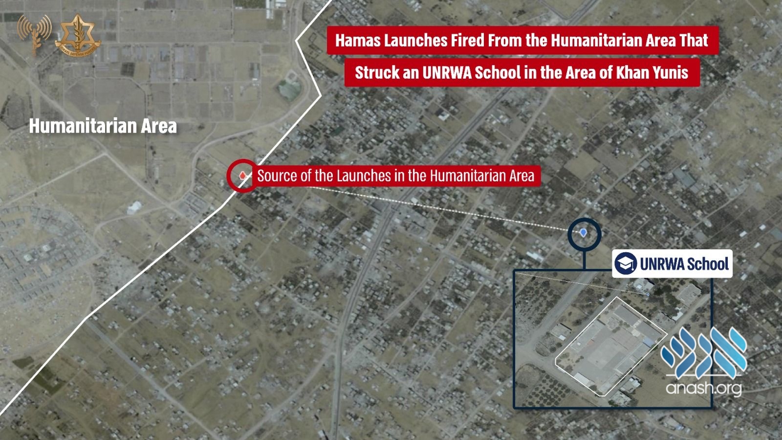 A failed Hamas rocket launch, from within the humanitarian zone, fell short and hit UNRWA’s Al-Qarara school in Khan Younis. The rocket killed two civilians and wounded several who were sheltering in the building. The IDF coordinated the evacuation of the wounded to a hospital in Deir al-Balah.