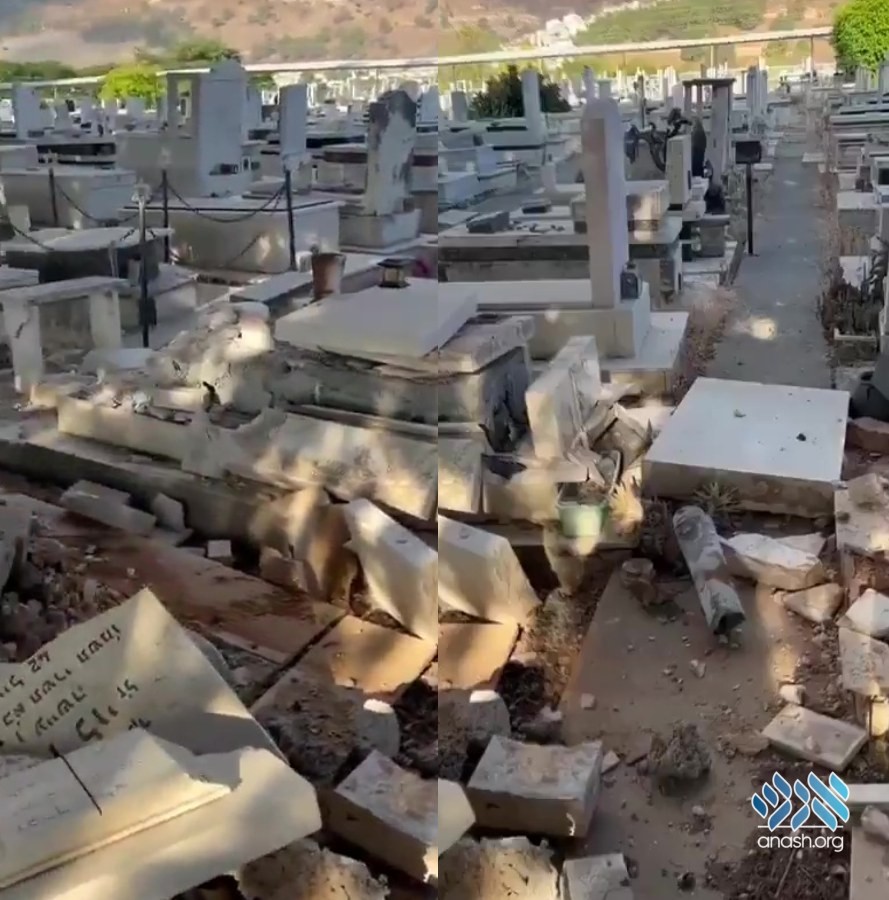 A cemetery in Kiryat Shemona, Northern Israel, hit by a Hezbollah rocket today: