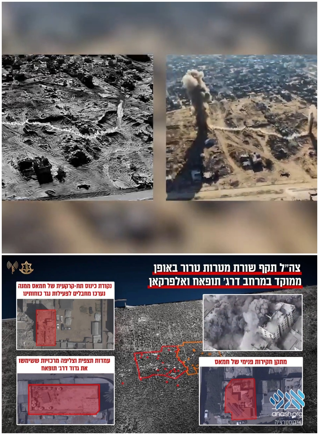 Since last Friday (one week ago), the IDF completed three waves of airstrikes in Gaza City, hitting 360 terror targets. These strikes were based on accurate intelligence, targeting Hamas infrastructure that posed a danger to IDF troops.