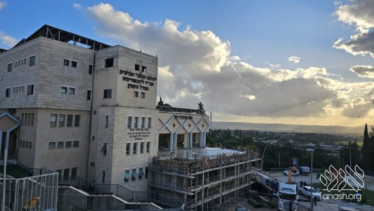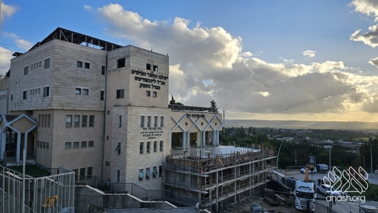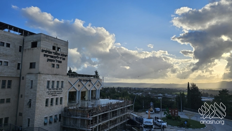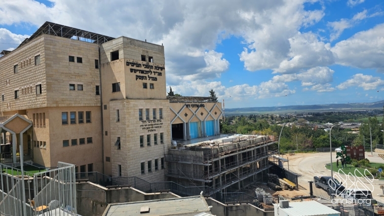 Despite the Yom Tov season and the security challenges, expansion work at the yeshiva in Migdal HaEmek continued throughout the month of Nissan, with steady progress made on key stages of the project.