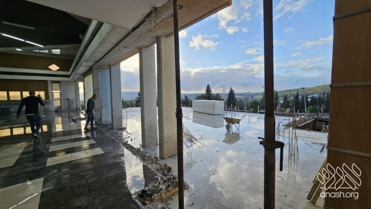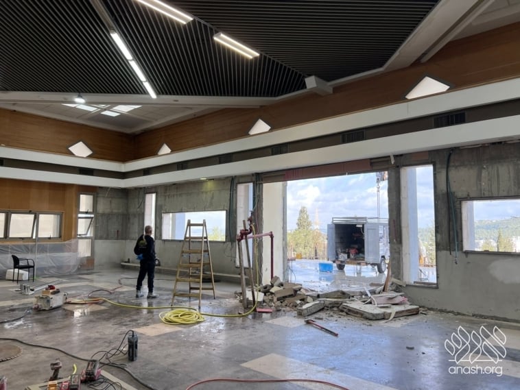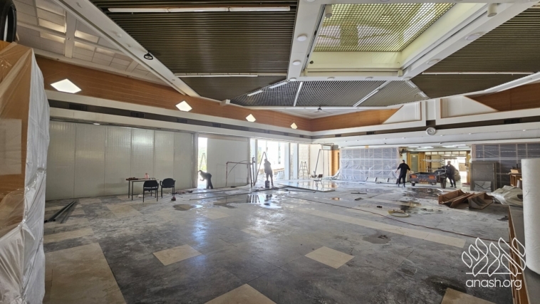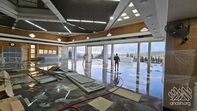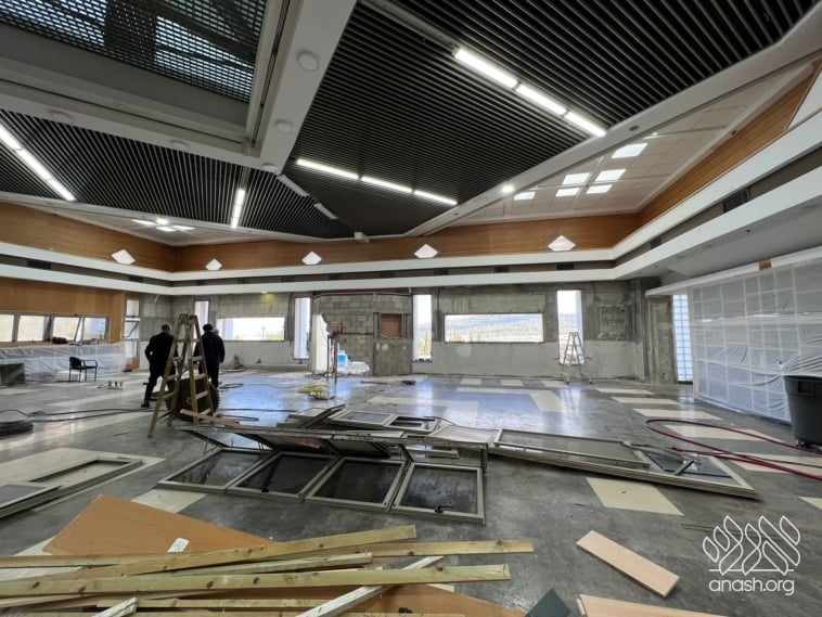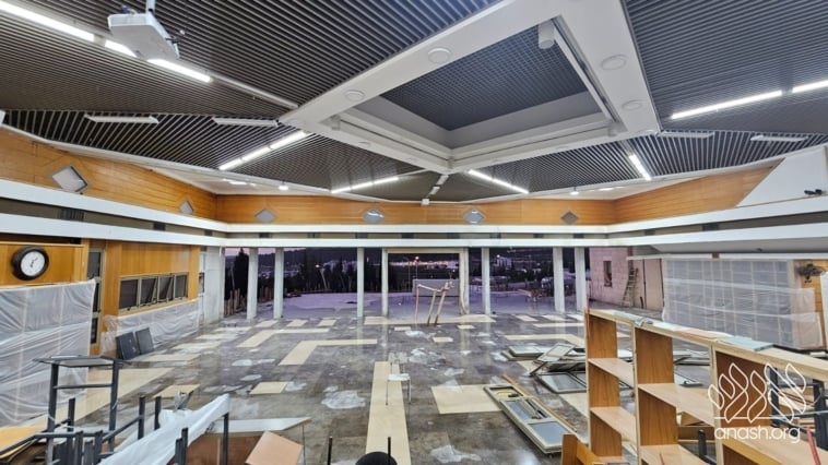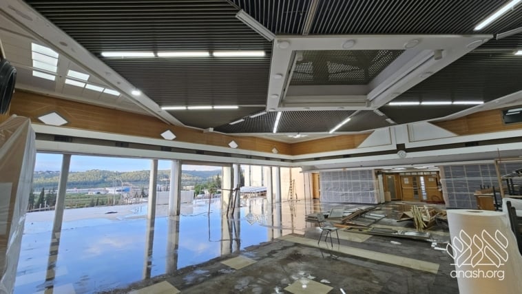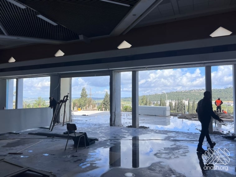 Despite the Yom Tov season and the security challenges, expansion work at Tomchei Temimim in Migdal HaEmek continued throughout the month of Nissan, with major progress to the newly expanded zal.
