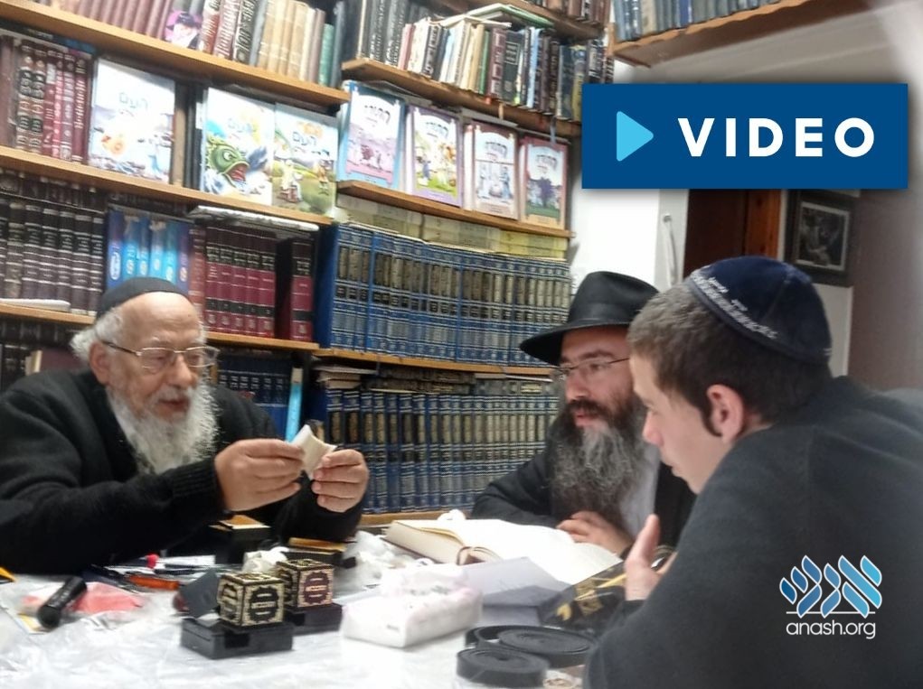 Rabbi Saadia Jerufi, who passed away yesterday, was captured minutes before his passing patiently explaining the details of how tefillin are made to a young bar mitzva age boy.