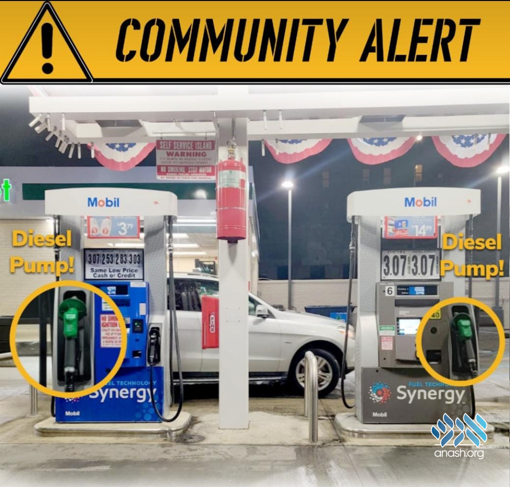 Message from Crown Heights Chaverim: Watch out for the diesel pumps by the Mobil gas station on Empire Blvd. A mistake can cause your car to be towed.