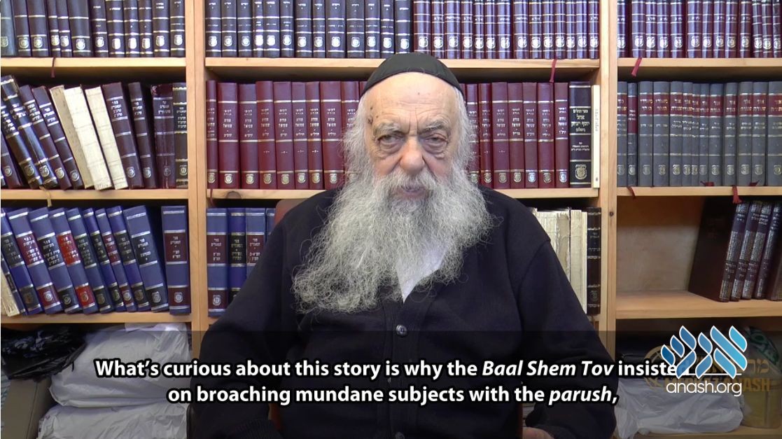 Let’s analyze this story. Seemingly, the Baal Shem Tov could have accomplished his goal far more simply: Instead of broaching mundane subjects with the parush, he could have asked him how his learning was coming along. The parush would then have been far more keen to respond that Baruch Hashem, he had learned many pages of Gemara that day and had produced many chiddushim. Hashem would have received His “tehilos Yisroel,” and everything would have worked out perfectly!