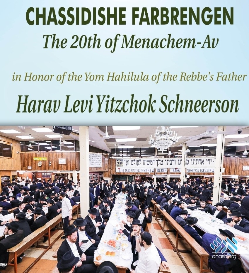 A farbrengen marking the 78th hilula of the Rebbe’s father Harav Levi Yitzchak Schneerson will be held Wednesday night at 770 Eastern Parkway, addressed by Rabbonim and Mashpi’im.