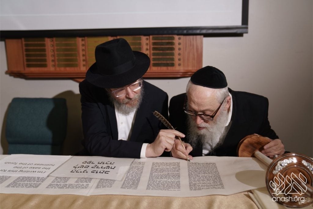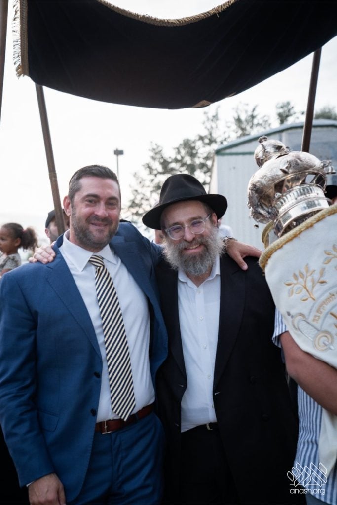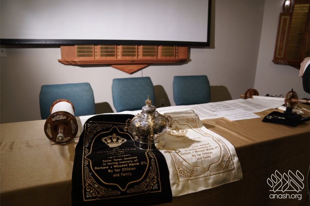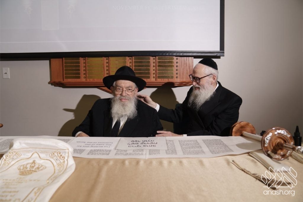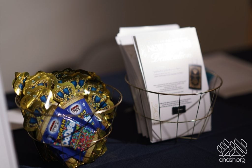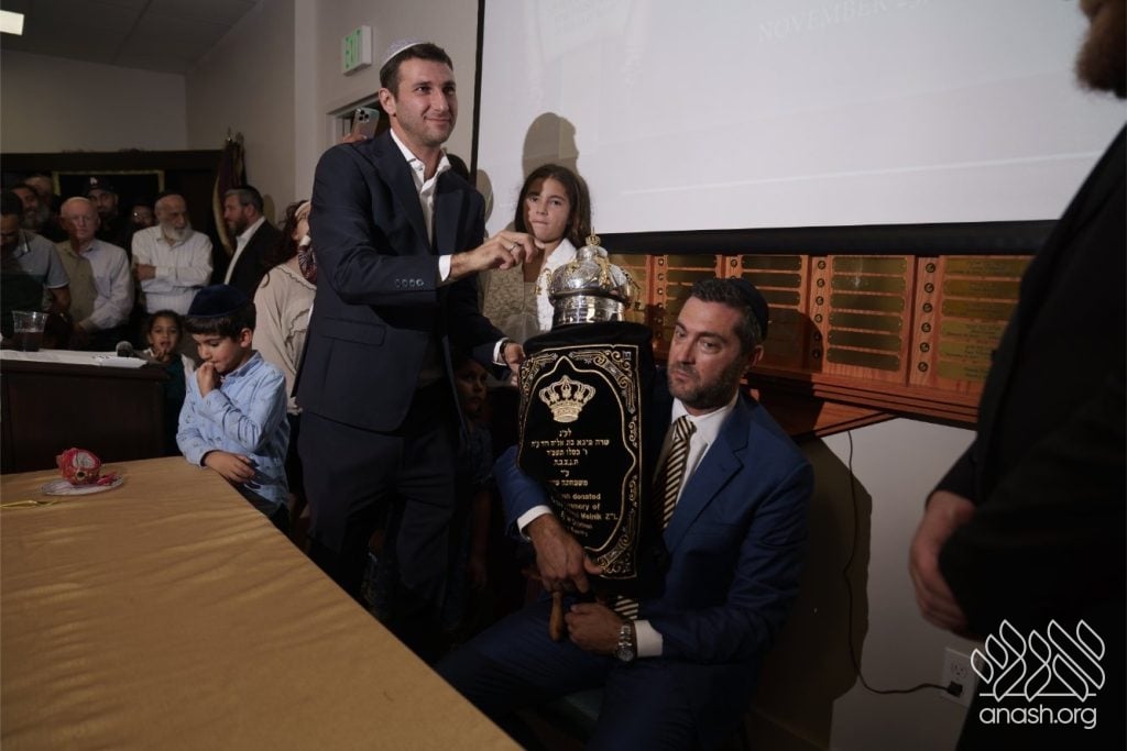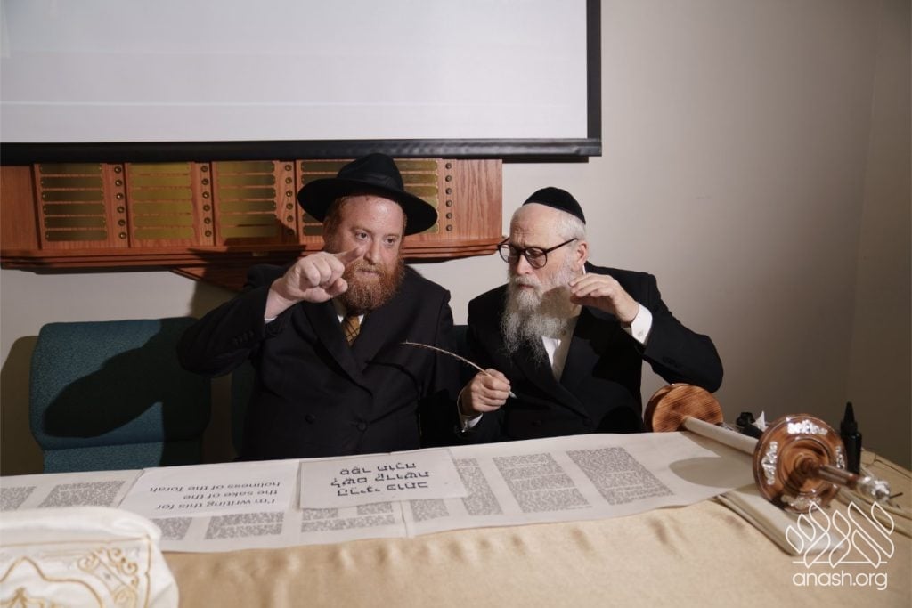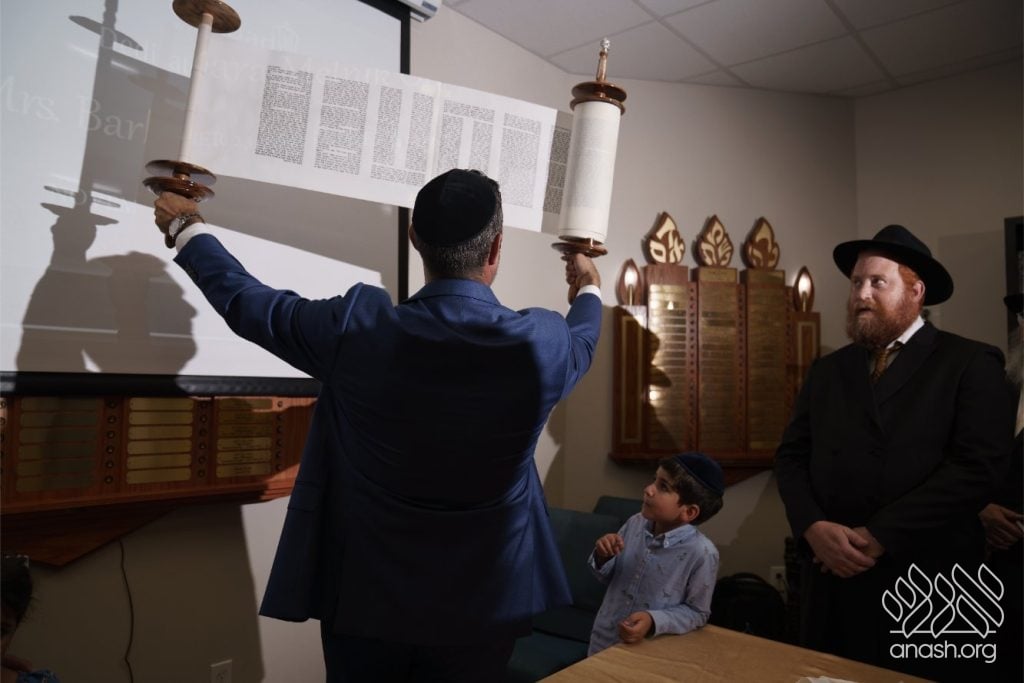 The Sefer Torah was dedicated by the Melnik family in memory of their mother, Barbara Melnik, by her children Ryan, Ilan, and Irit. The event began with the writing of the final letters by the sofer, Rabbi Moshe Klein of Brooklyn, with families stepping up to assist, holding the quill together with the sofer.