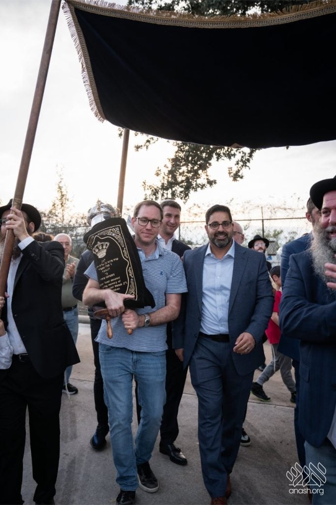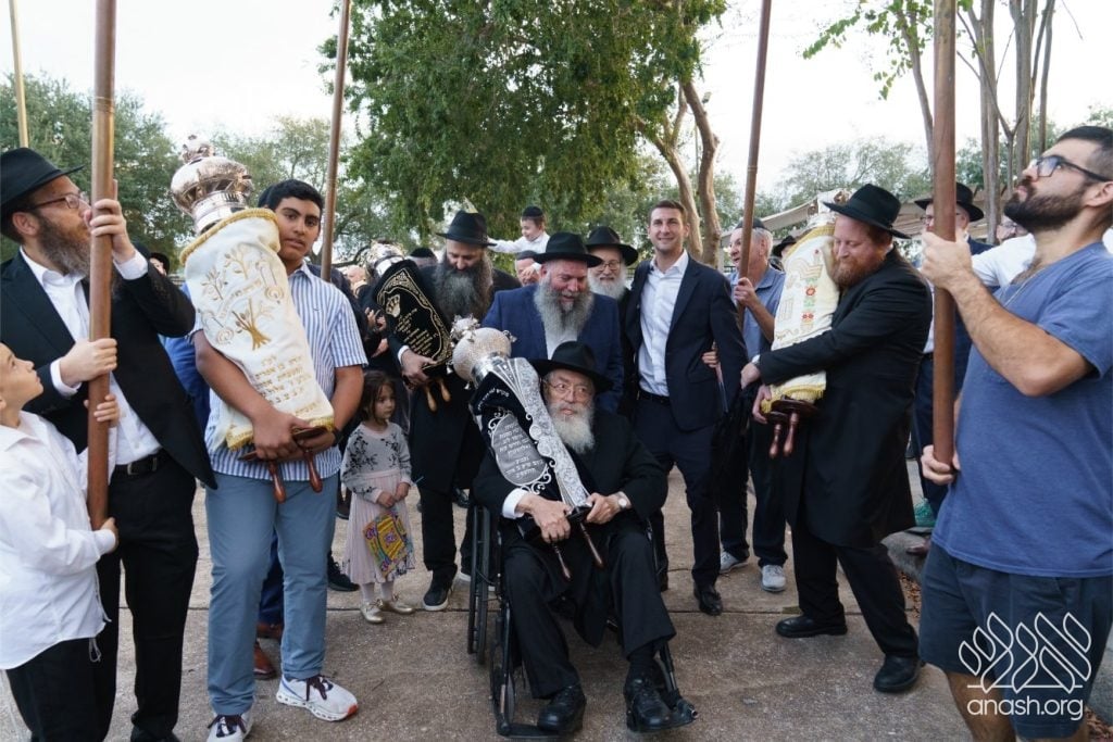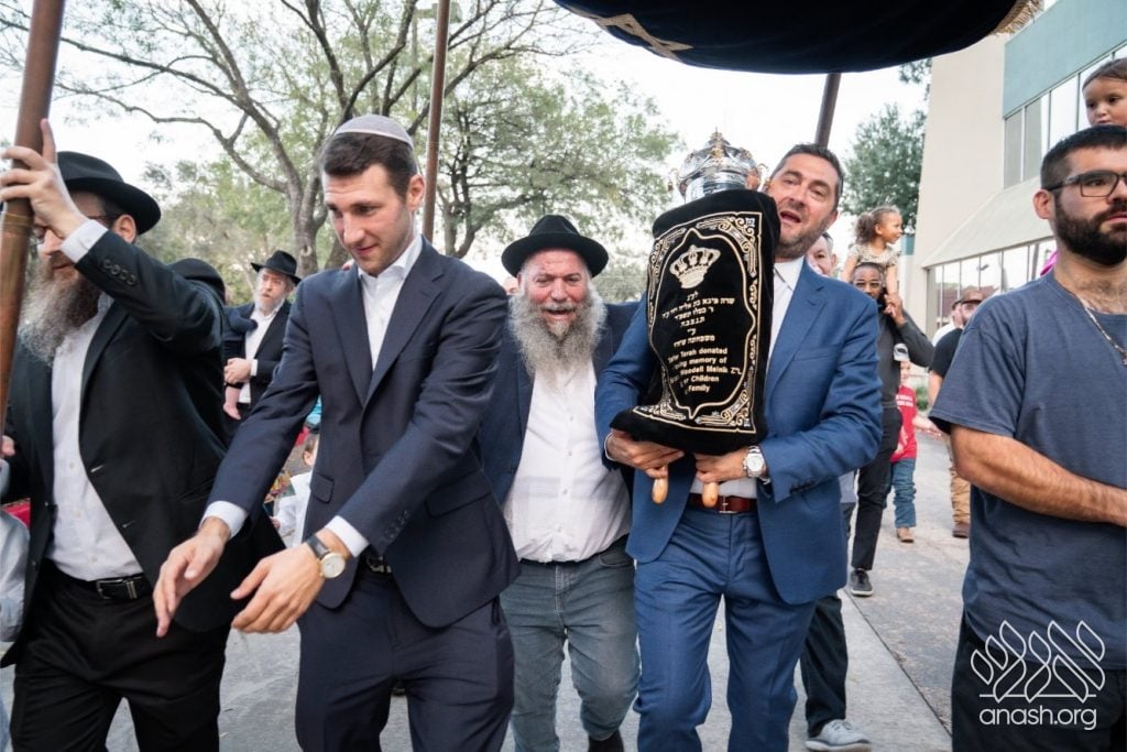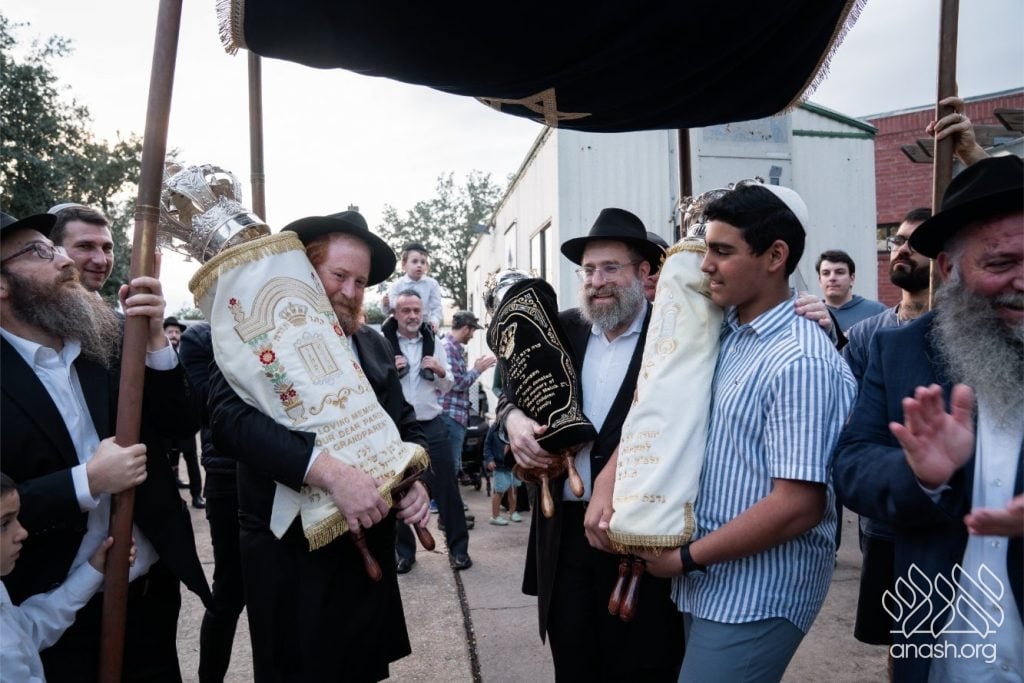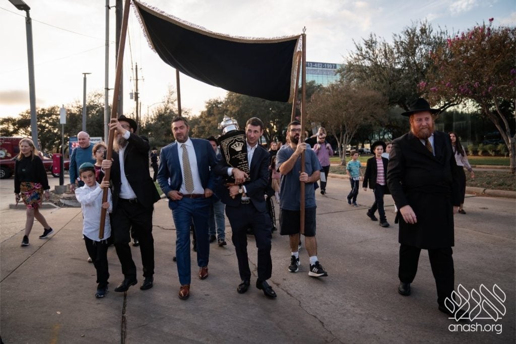 The wider Houston community celebrated a new Sefer Torah at Chabad of West Houston, where they joined to write the final letters and celebrate with spirited hakafos, music, and a festive seudah.