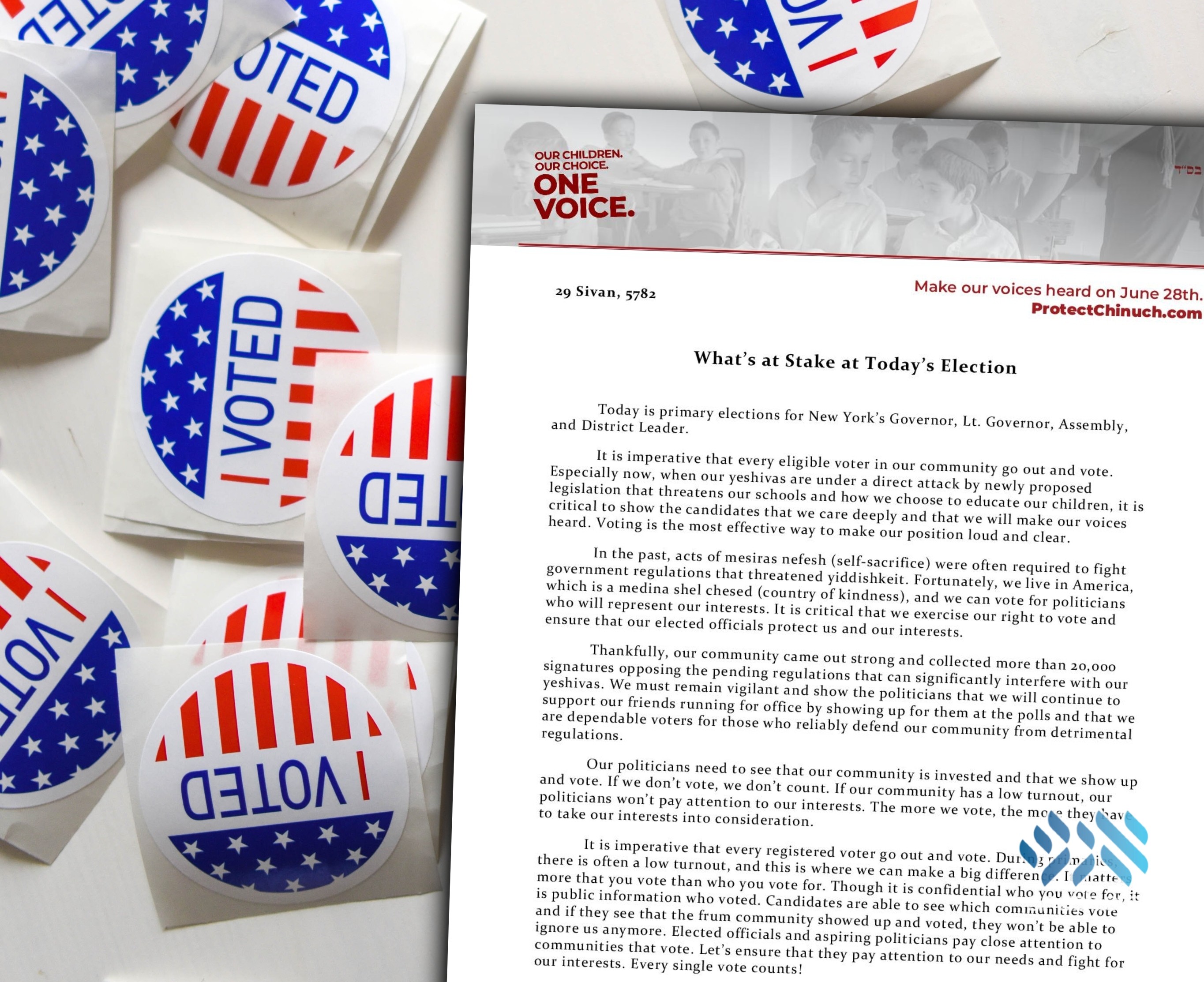 It is imperative that every eligible voter in our community go out and vote. Especially now, when our yeshivas are under a direct attack by newly proposed legislation that threatens our schools and how we choose to educate our children, it is critical to show the candidates that we care deeply and that we will make our voices heard. Voting is the most effective way to make our position loud and clear.