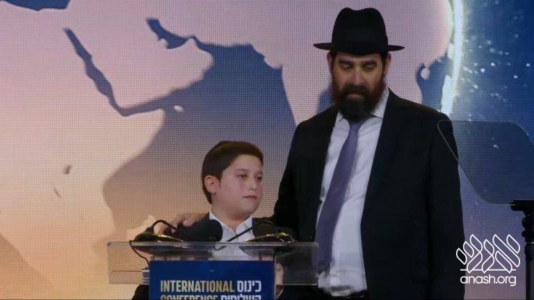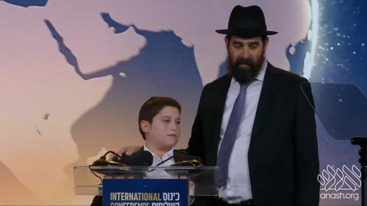 Perhaps the most inspiring and emotional moment of this year’s gala banquet was when 12-year-old Zalmy Feldman took the stage, walking on his prosthetic feet. His father, shliach Rabbi Menachem Feldman of Nes Ziona, Eretz Yisroel, spoke in an extremely moving video at the Kinus Hashluchim Gala Banquet and shared a deeply emotional account of how his son Zalmy’s life-threatening illness became a source of strength for their family and their entire community.