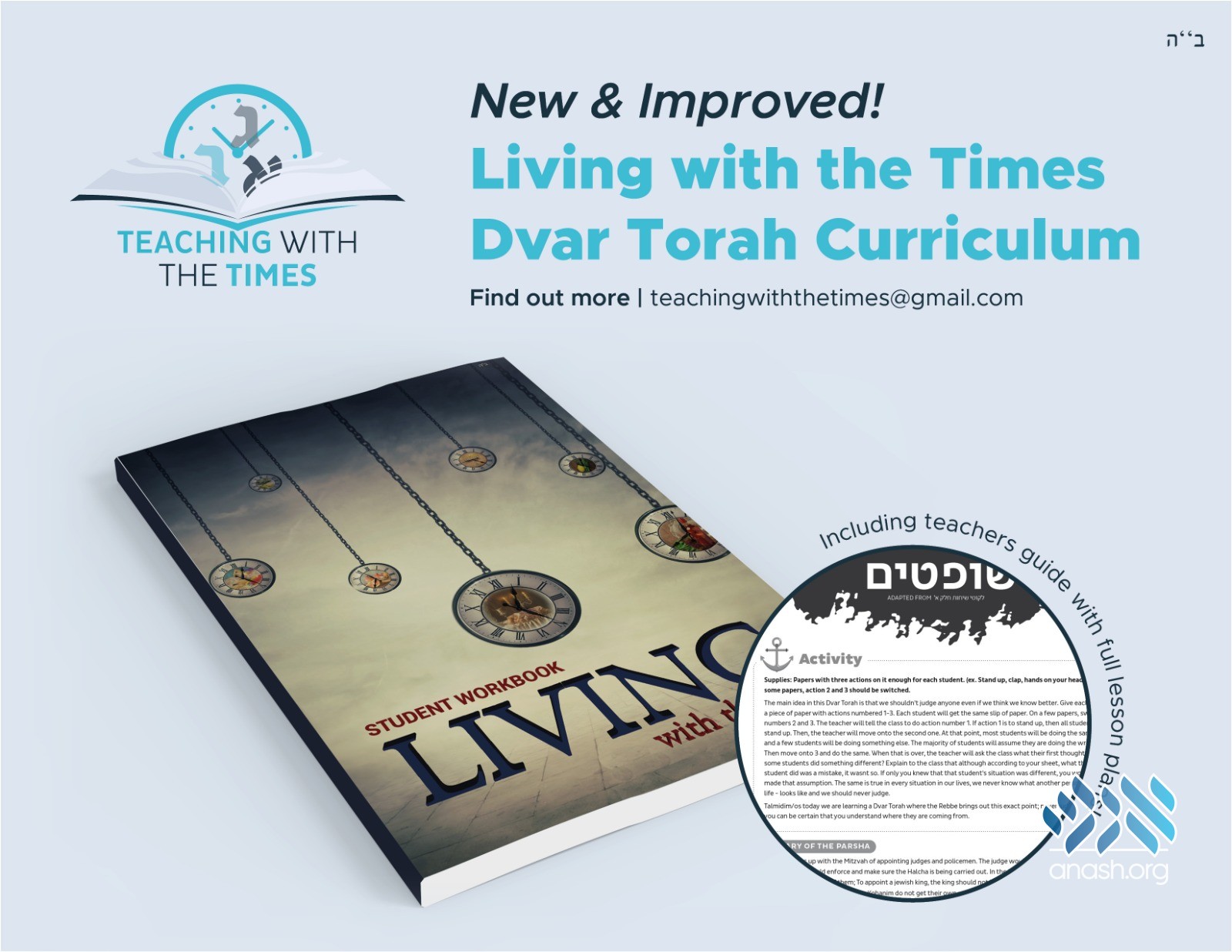 The feedback has been very enthusiastic. A teacher at Mazel Day School commented, “I’m always looking for curriculums to enhance my classes. I was delighted to come across Living With the Times. It really gave structure to my lesson, the Divrei Torah were presented in such a clear and precise way, and the images on the powerpoints really brought the class to life.” Rabbi S. Reinetz from Cheder Chabad Florida commented “It’s delightful, filled with Toras Rabeinu for the young Chassidim and comes with an informative teacher’s edition”