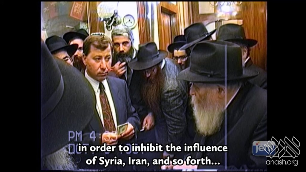 On Sunday after Shabbos Bereishis 5752 (1991), Mr. Ron Nachman, Mayor of Ariel, Eretz Yisroel, came by the Rebbe for a bracha. After thanking the Rebbe for the blessings he received for the flourishing town of Ariel, where he served as mayor, Nachman asked the Rebbe’s advice on how to present the loan guarantee for Israel that he was working on to the American media.