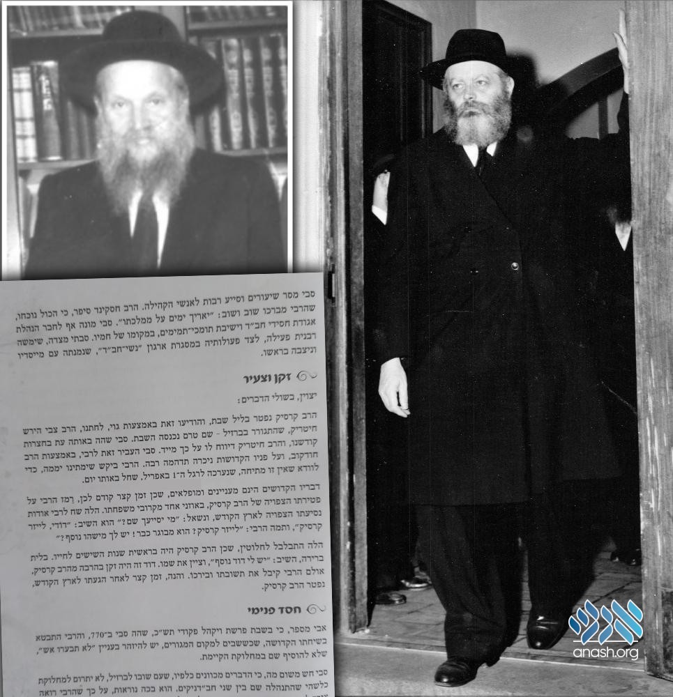 Just a short while previously, a member of Rabbi Karsik’s family visited the Rebbe and told him about his expected trip to Eretz Yisroel. When he was asked by the Rebbe who will assist him in Eretz Yisroel, the relative responded that his uncle, Leizer Karasik would.