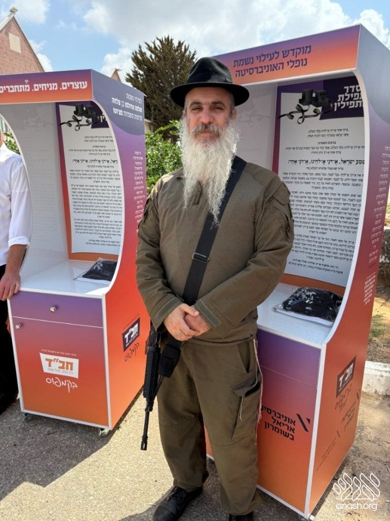 Forty custom Tefillin stands with mehudar tefillin, each carrying the name of another young soldier who fell in the ongoing war, have been stationed at the high school where they attended. The stands are the project of Chabad Youth by Rabbi Moshe Shilat and are sponsored by R’ Yossi Popack.