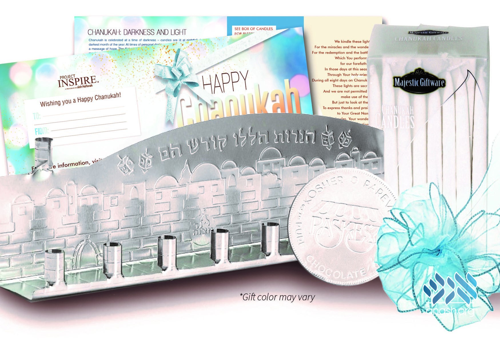 Recently, a friend shared with me forwarded me an initiative by Aish.com’s “Project Inspire” geared at reaching out to fellow Jews: a “Chanukah gift” featuring candles, gelt, and an instantly recognizable, foldable metal Menorah.