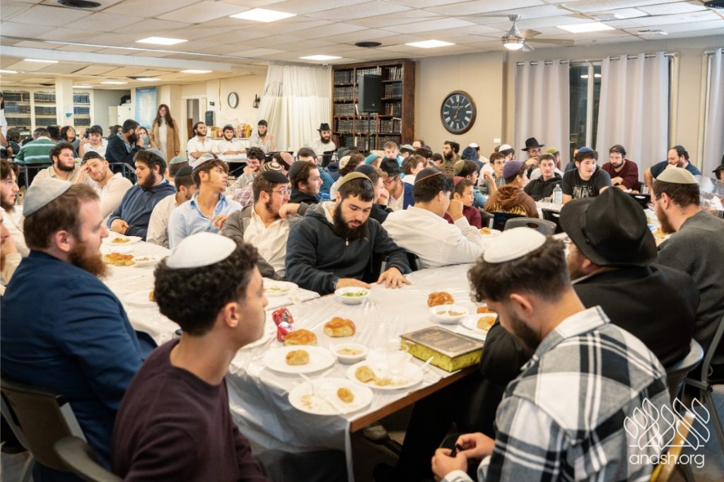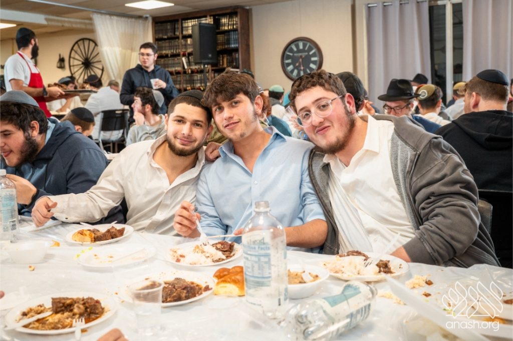 Now a newly married member of the yeshiva’s staff, together with his wife and newborn son, Yosef Yitzchok, Mendel marked this remarkable accomplishment surrounded by family, friends, and talmidim.