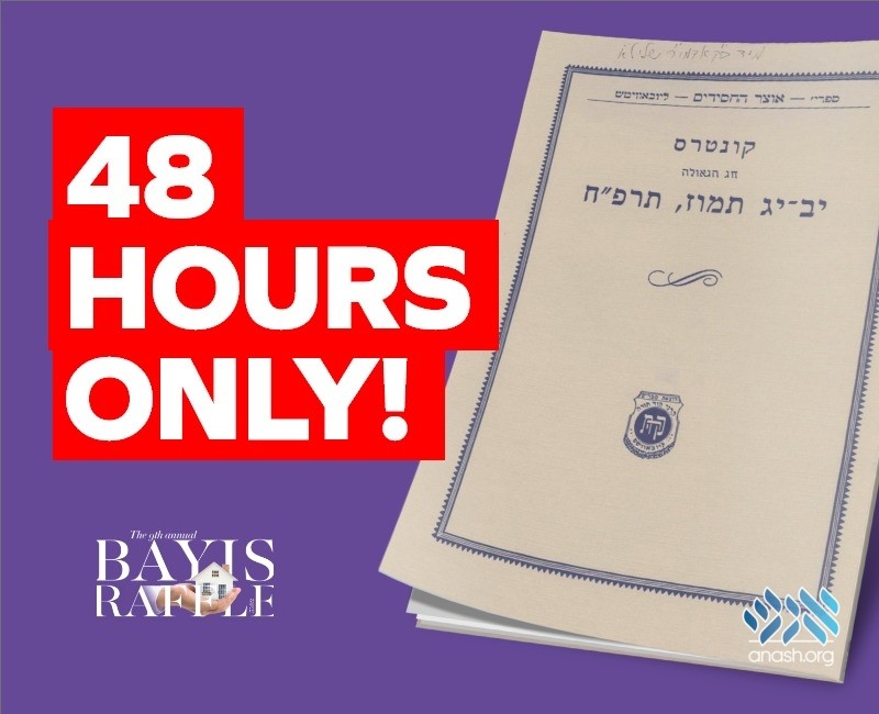 Machon Or HaChasidus is raffling off a Yud Beis Tammuz Kuntres from the Rebbe for those who participate in the Bayis Raffle for the next 48 Hours!