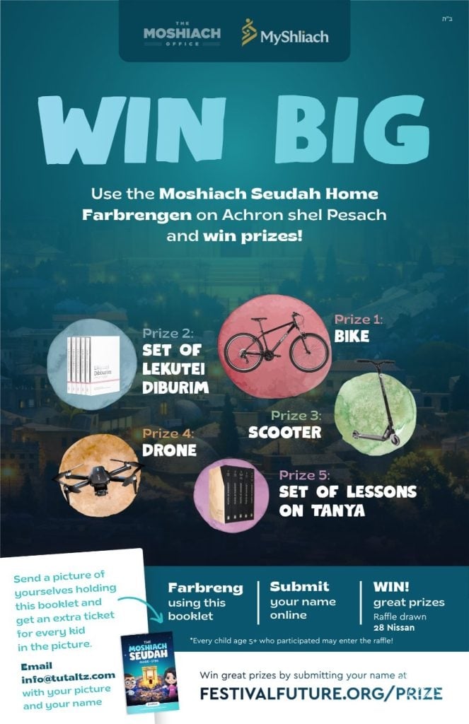 This Pesach, over 4,000 families participated in a tailor-made Moshiach Seudah experience through the Moshiach Seudah Family Home Program — a thoughtfully designed booklet created for Lubavitcher families.
