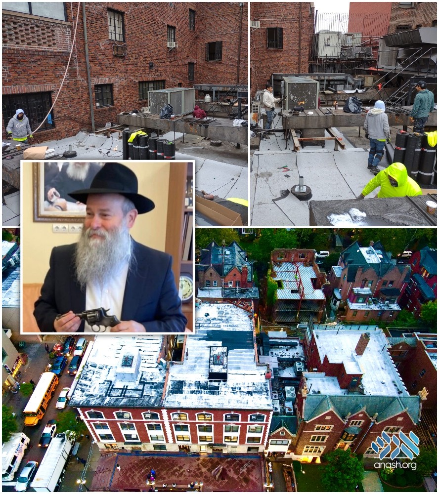 For the past number of years, the main shul at 770 suffered from frequent leaks, occurring after every significant rainfall. During the hours of the storm, and for days afterwards, mispalelim and bochurim would need to sidestep dripping water and puddles on the floor to daven and learn in the shul. After each occurrence, the problematic areas were patched up with the hope of stopping the leaks, but by next time a storm arrived, the leaks would be back in full force.
