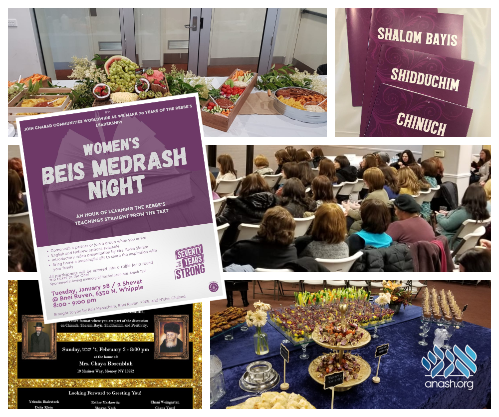 At these events, the women heard inspirational words from local leaders, watched a specially produced video, learned a Sicha with guided discussion points and broke into round-table discussion groups to discuss the Rebbe’s view on important issues including shidduchim, chinuch, life’s challenges and shalom bayis. Some communities have planned more events leading up to and on Yud Shvat that will include farbrengens with guest speakers and learning opportunities.