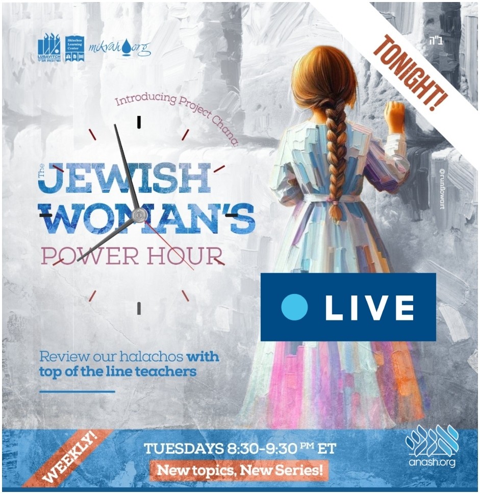 Live at 8:30: Project Chana Power Hour brings in top of the line teachers to pack one solid hour with halachic content from the three special mitzvos of the woman.