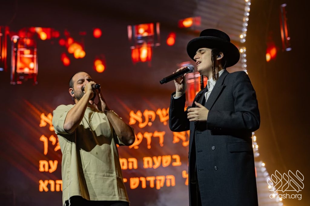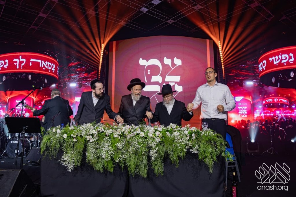 Following the music, crowds filled the halls for Chassidishe farbrengens into the small hours of the night. The central farbrengens were led by noted speaker Rabbi Shneur Ashkenazi.